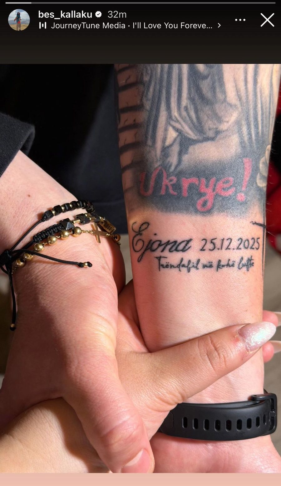 Por, e gjitha kjo përfundoi pak ditë më parë kur publikoi një foto ku ndodhej dora e tij me atë të një gruaje, një tatuazh ku shkruhej Ejona, një datë dhe një këngë romantike.