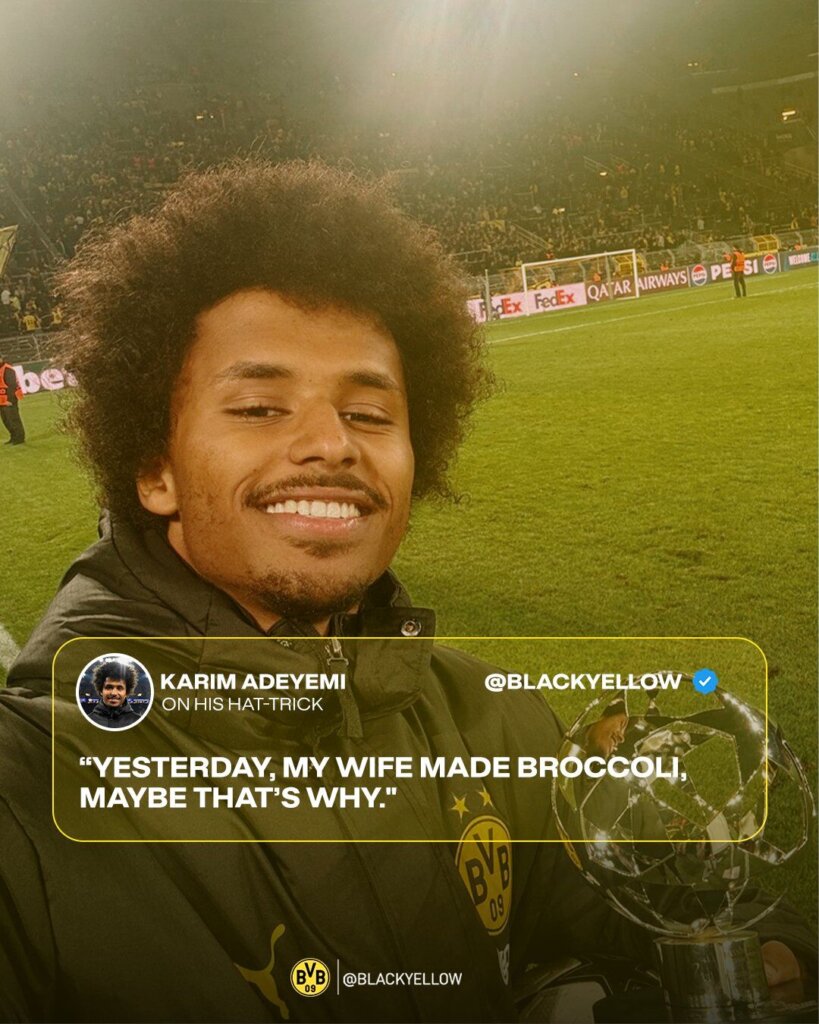 Tre gola në pjesën e parë u shënuan nga Karim Adeyemi, i cili nuk mund të mos ishte i lumtur.