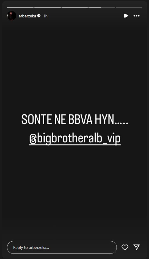 Fituesi i “BBA5”, Arber Zeka ka ngritur pikëpyetje rreth këtij “Prime”-t.Ai ka publikuar një shkrim në “Instastory”, duke shkruar: “Sonte në BBVA hyn …”. Se ç’ka do të ndodhë mbetet ta zbulojmë sonte.