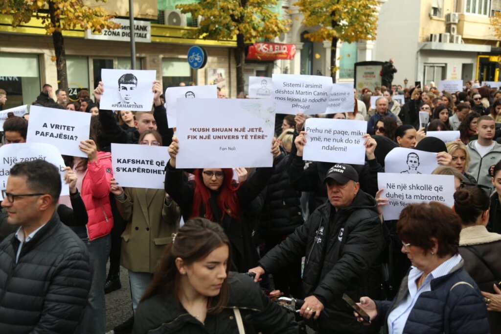 “Ne nuk kërkojmë mëshirë, por të drejtën për një sistem arsimor që i mbështet dhe mbron fëmijët. Të bashkohemi dhe të luftojmë për drejtësinë që Martini dhe shumë të tjerë si ai meritojnë. Mjaft qëndruam në heshtje. Na u bëni krah ne të rinjve, bëhuni krahë klasës së Martinit”, tha një e re.