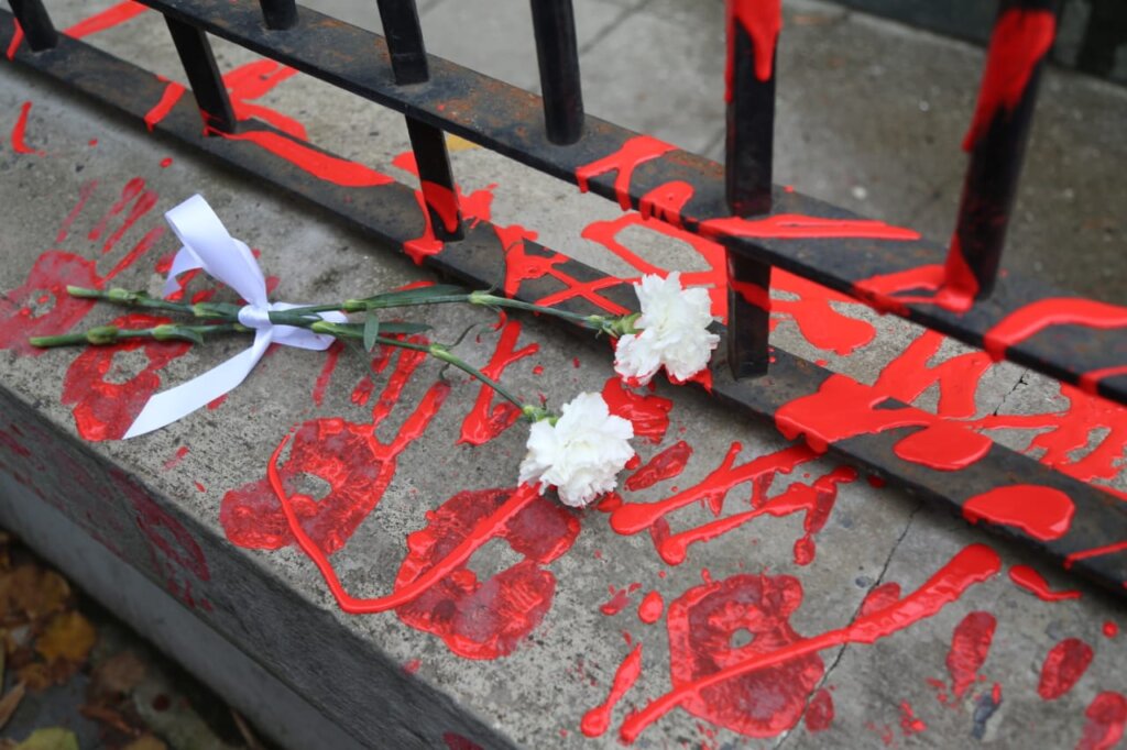 Prindërit dhe nxënësit kanë hedhur bojë në asfaltin para Ministrisë së Arsimit te Rruga e Durrësit në shenjë proteste pas vrasjes së 14-vjeçarit Martin Cani.