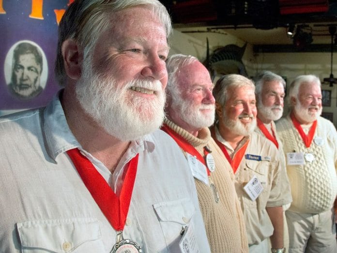 Burra me mjekër të bardhë, bluza të trasha e veshje peshkatari mbushën një bar të qytetit ishull të Floridës, duke garuar në konkursin e përvitshëm të sozisë së Heminguejit.