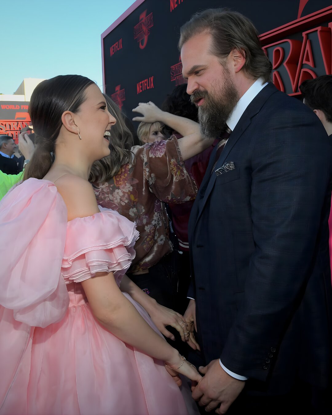 Duhet sqaruar këtu se, sipas raportimeve, ngacmimi i dyshuar nuk ishte i natyrës seksuale. Ajo që është e sigurt është se aktorët patën një bashkëpunim të ngushtë në sheshxhirim, pasi Harbour luajti Jim Hopper, i cili ishte bërë një figurë atërore për personazhin e Brown, Eleven/Jane Hopper.