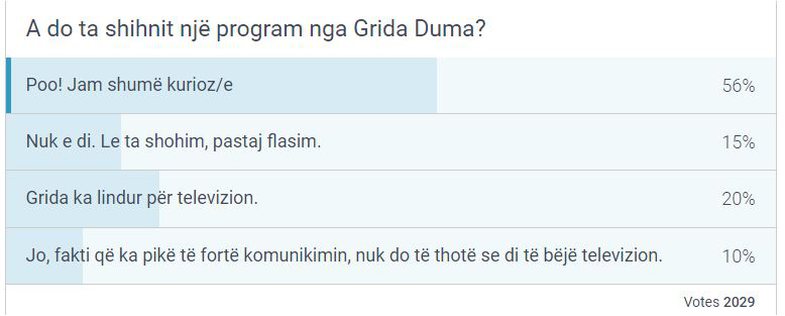 Sipas një sondazhi të Anabel.al, duket se njerëzit po e presin me kërshëri Grida Dumën në televizion.